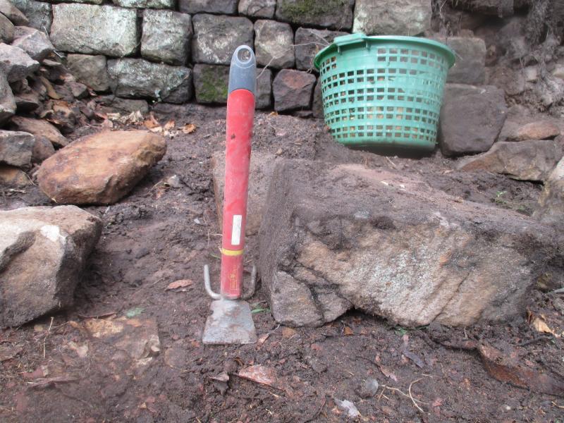 Es rasselt immer mal wieder ein Stück Mauer zusammen. Wenn die Mauer nicht zu hoch und die Steine nicht zu schwer sind, setze ich die Mauer selbst wieder auf.