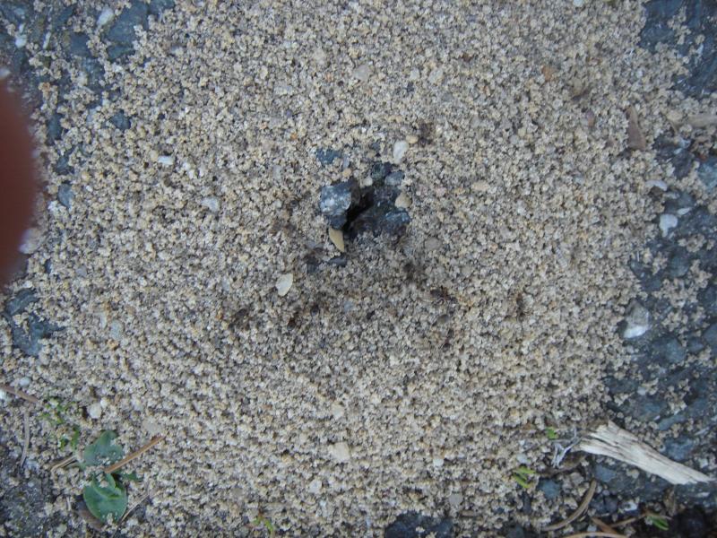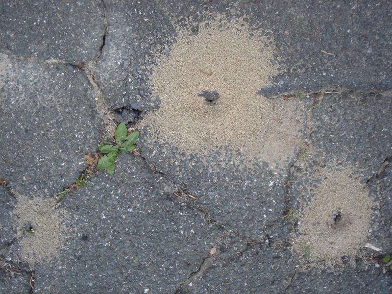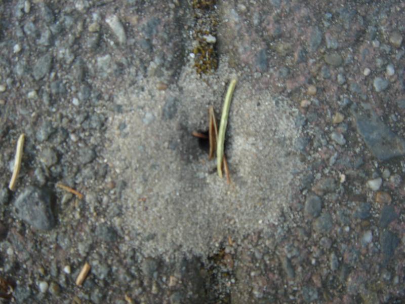 Die ( Asphalt- ) Wüste lebt ! Ameisenhügel in ungünstigster Lage.