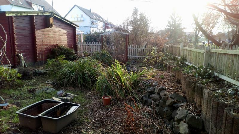 Auf der sonnigen Seite zur Grundstücksgrenze eher sonnig, da war die Bepflanzung aber immer schon "ausbaufähig".