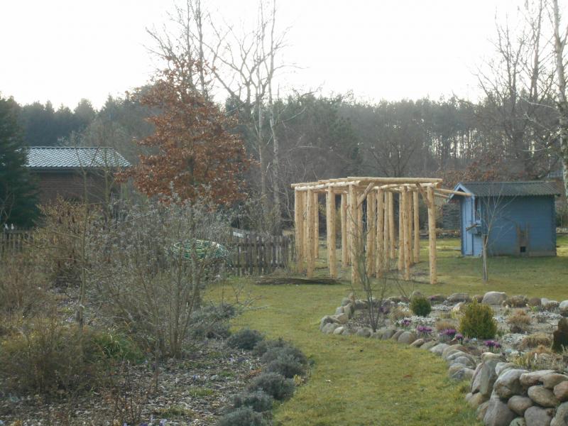 Und (da ich ja verfressen bin) würden zwei oder drei Actinidia (arguta) bei der Größe des Laubenganges auch noch passen! :D