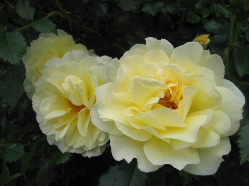 Christine-Helene hat keinerlei rosa Unterton und verblasst von gelb zu creme. Dünntriebiger Rambler, der sich bestimmt gut leiten lässt. Hier wächst sie allerdings als Strauch.