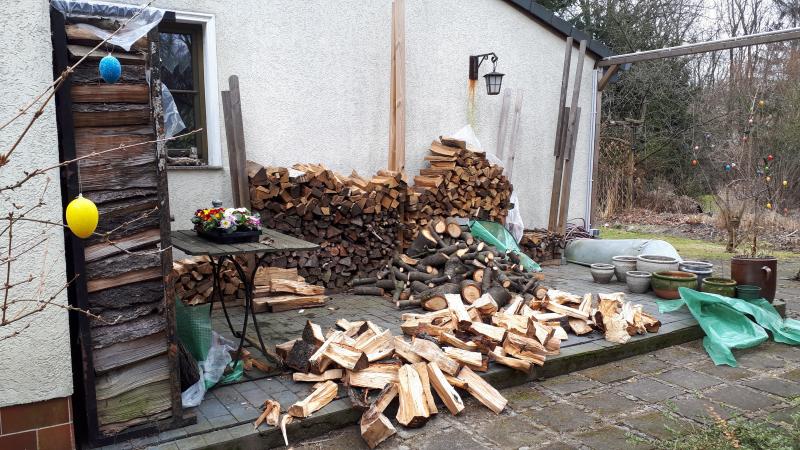 Hier mal ein Foto vom Anfang - das erste Feuerholz wurde im Garten 2013 geschlagen - da war der Kamin noch in Planung.... - der kam zur Heizsaison 2014 ein ganzes Jahr später...