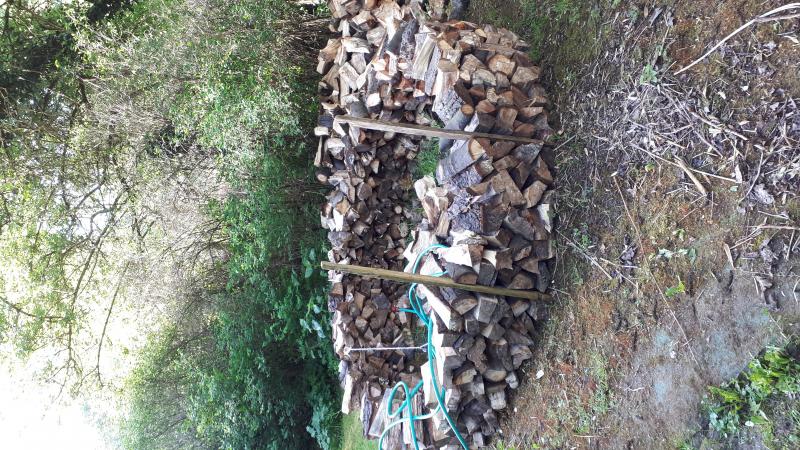 Doch oben über den Stapeln am Haus liegen Folien, die ich mir auch einer alten Folienzeltfolie geschnitten habe. Die verrottet nicht...die liegen auf dem einen Foto schon links in der Ecke rum