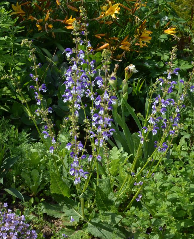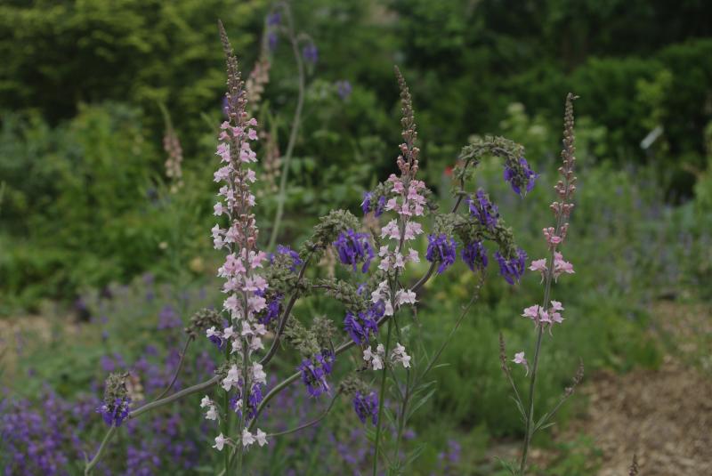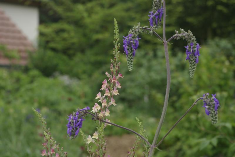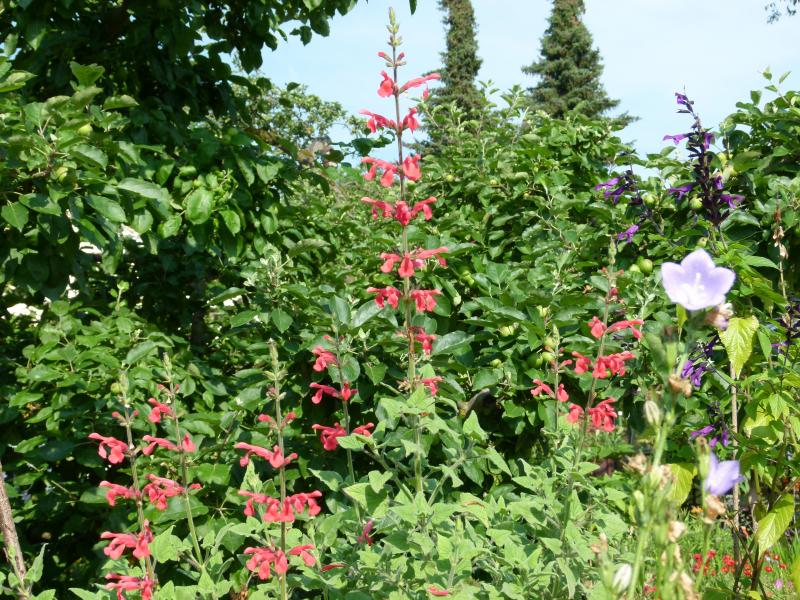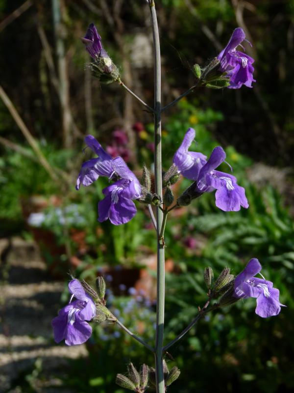 Ich habe mir letztes Jahr aus England einen Steckling mitgebracht, der jetzt blüht: Salvia candelabrum. Blätter und Duft der Blätter wie Küchensalbei, aber sehr schöne, große Blüten, bei älteren Pflanzen auch in sehr üppigen, verzweigten Blütenständen. Hübsch, nicht wahr?
