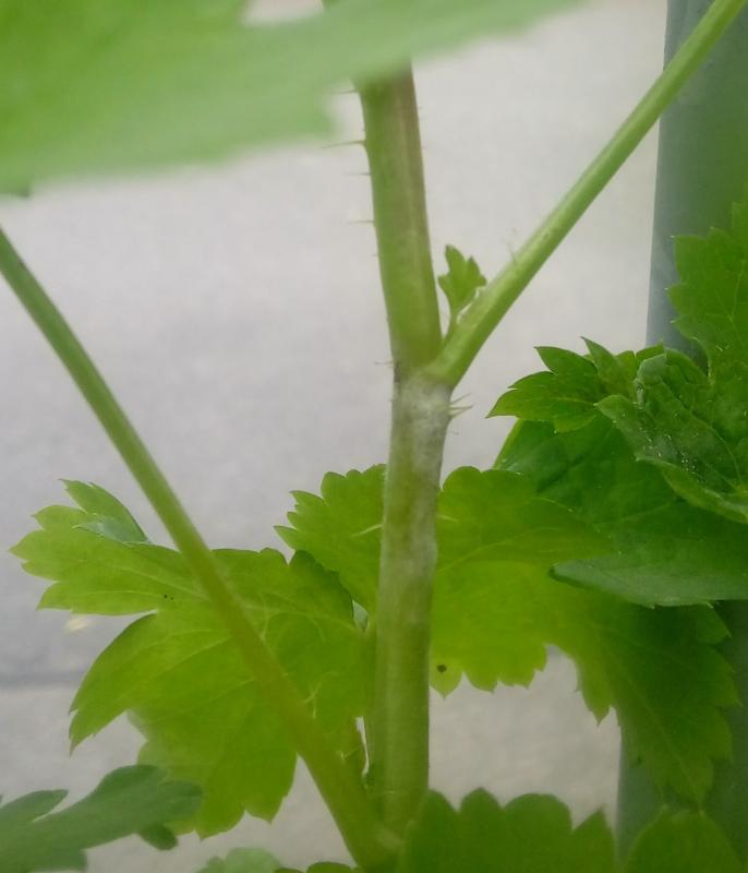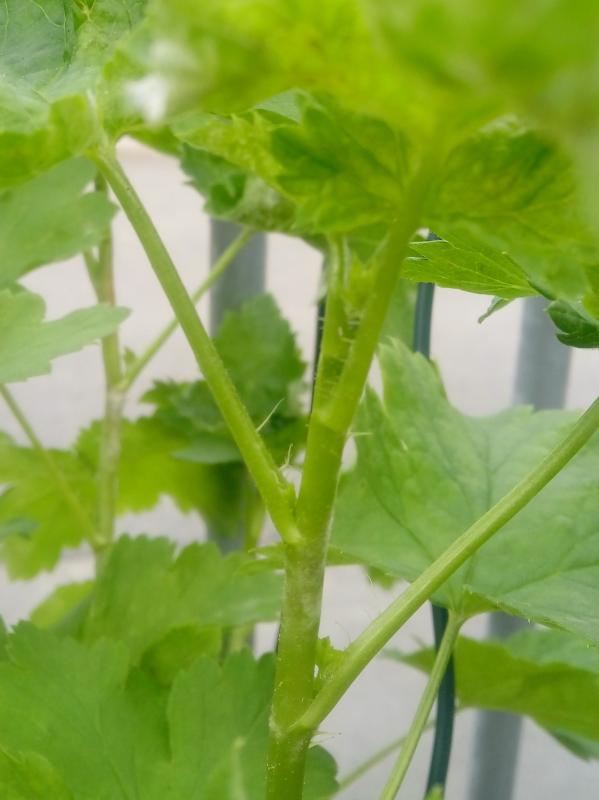 Auch für die Josta und deren Sämlingen typisch, die recht dicken "Haare" an den Blattsteilbasen.