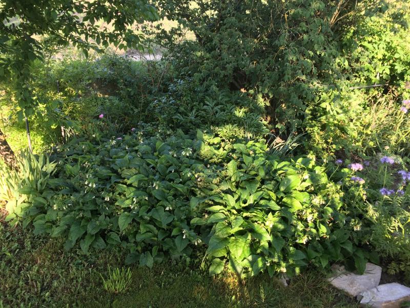 Möglicherweise wird es schwierig, den Beinwell zu entfernen. Ich weiß nicht, wie sich die Ziersorten benehmen. Aber ich habe es bis heute nicht geschafft, ein beinwellverseuchtes Beet ganz zu befreien. In einer Strauchrose trieb noch letztes Jahr, d.h. nach 20 Jahren etwas aus. Jetzt ist die Rose gerodet, und ich hatte eigentlich gedacht, alle Wurzeln entfernt zu haben. Bis vorgestern....