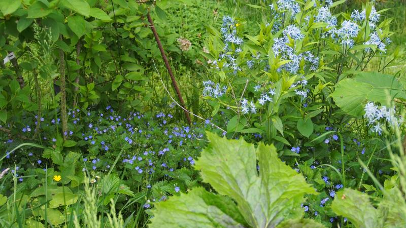 den Gamander-Ehrenpreis, Veronica chamaedrys, liebe ich sehr. Hier blau in blau mit Amsonia tabernaemontana subsp. salicifolia.