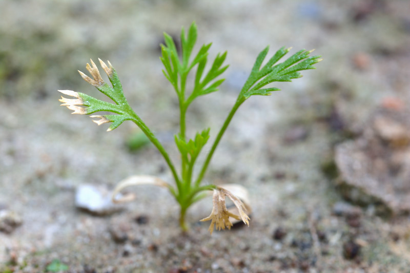 ich habe hier ein Problem mit diesen einjährigen Adonis-Röschen Sämlingen. Der Boden ist ein kalkhaltiger Lehmboden wie in der Natur. Leicht gedüngt wurden die Pflanzen ebenfalls. Trotzdem stockt das Wachstum sehr und die nachtreibenden Blätter werden von der Spitze her weiss und sterben ab. Der gezeigte Sämling ist schon zwei Monate alt und vorher gekeimte Sämlinge sind inzwischen leider hinüber.