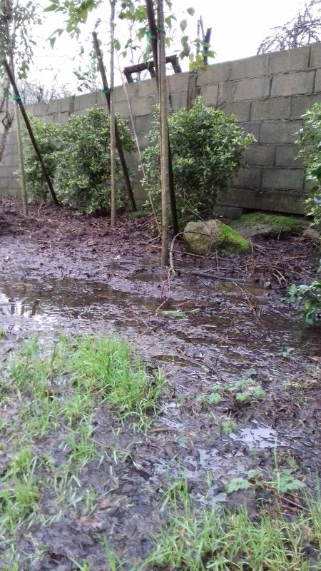 Zunächst einmal werde ich im Herbst einen Graben baggern (es gibt aber nicht viel Gefälle) und den Pflanzplatz ca. 30 cm höher legen.
