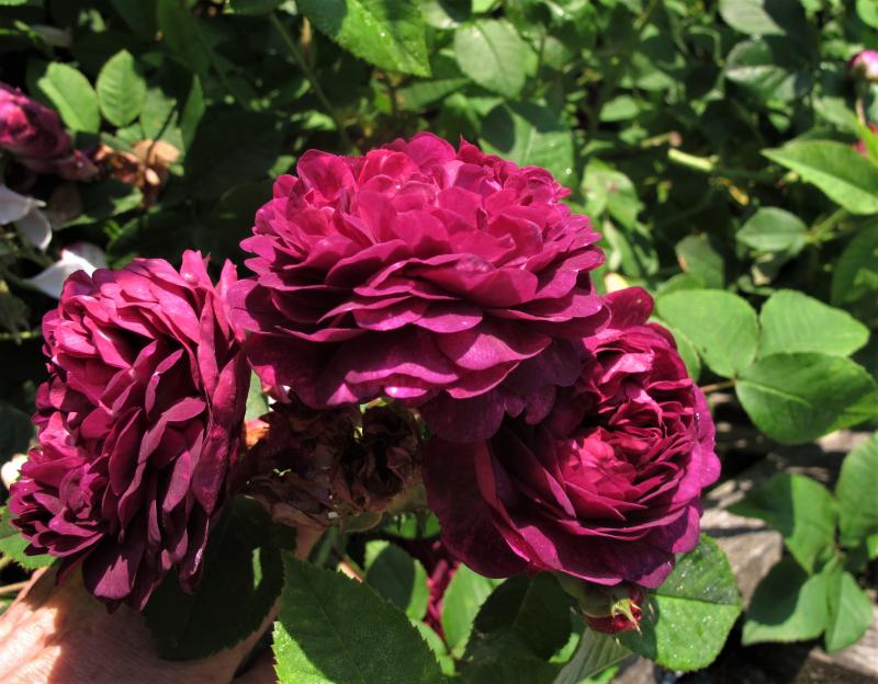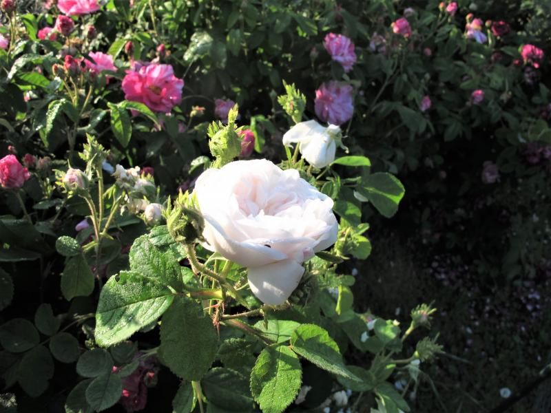 ...von letzter Woche hab ich mitgebracht. Die Blüte hat heuer fast drei Wochen früher begonnen, das heiße Wetter hat zudem das Verblühen enorm beschleunigt, die Junikäfer haben ihren Teil zur Vernichtung beigetragen. Die Bilder sind tw. suboptimal, es war viel zu tun, die Sonne schon frühmorgens fast zu stark, und außerdem standen noch da und dort die unvermeidlichen Hasengitter. Den Rosenfaden wollte ich nicht sprengen (bei mir kommt ja immer alles auf einmal, in den vergangenen Jahren erst nach dem Sommer) deshalb hier ein paar Eindrücke -