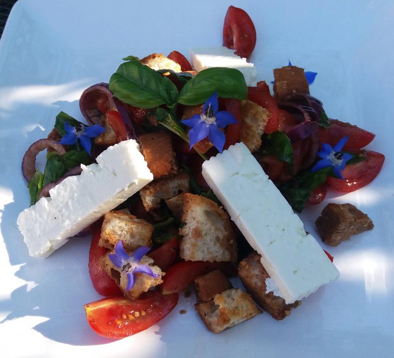 letztens salat mit schafskäse, frischen aprikosen und pinienkernen...