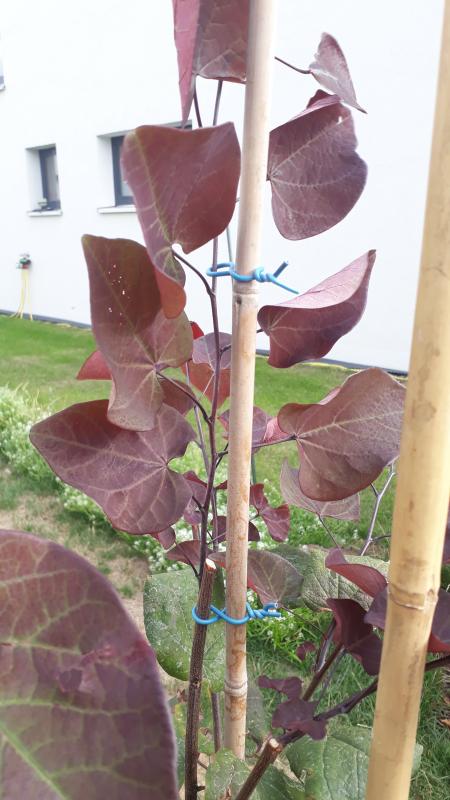 Aus Cercis canadensis Forest Pansy lassen sich sicher geradschäftige Hochstämme erziehen. Damit muss man jedoch bereits als Jungpflanze beginnen, da der Judasbaum extrem brüchiges Holz hat. Nachträglich wird man ihn kaum "geradebiegen" können. Von alleine wird der Judasbaum vermutlich nie einen durchgehenden Leittrieb ausbilden. Warum ihn also nicht in seinem "natürlichen Habitus" wachsen lassen. Bis auf eine gewisse Höhe kann man auch so etwas aufasten und ich finde, dass so etwas auch ganz spannend aussehen kann.