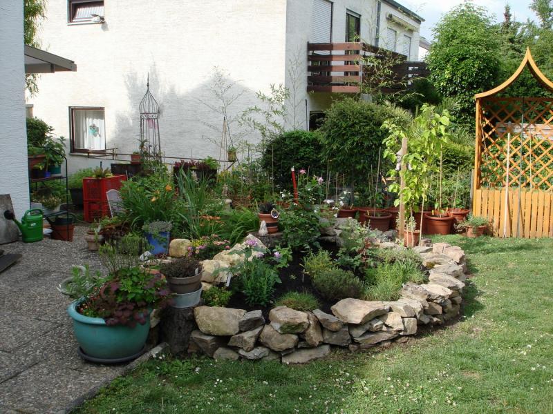 Im Frühjahr 2012 hatte mein Mann eine vierfach Bypass-OP und fiel erstmal als Hilfe aus. Die täglichen Fahrten zur Reha im Taunus nutze ich zum Steine sammeln. Daraus entstanden die ersten Beeterhöhungen.