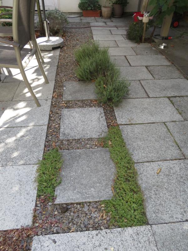 Nur: In den letzten Jahren habe ich in meinem Hof Blackboxen lassen. Alles was mir gefiel habe ich stehen lassen, alles andere gejätet. So hat sich z.B. Thymian und Sedum verbreitet...
