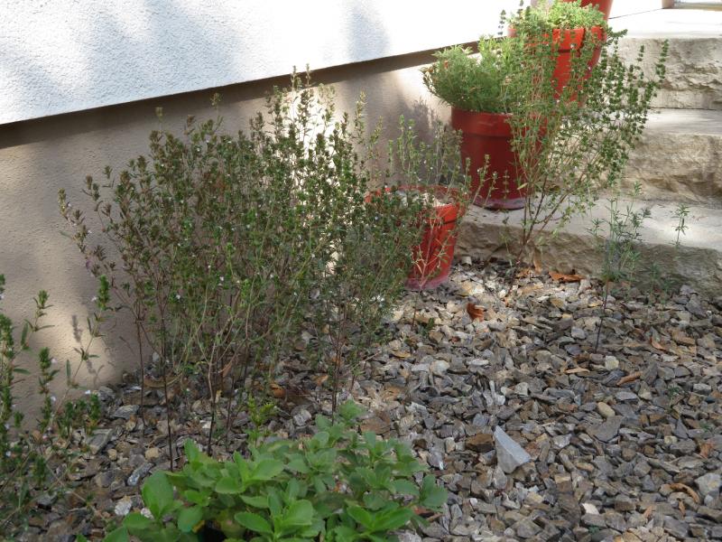 ... und das Bohnenkraut, das mir Schwiegermama vor Jahren in einem Blumenkasten geschenkt hat, darf sich auch ein bischen verbreiten.