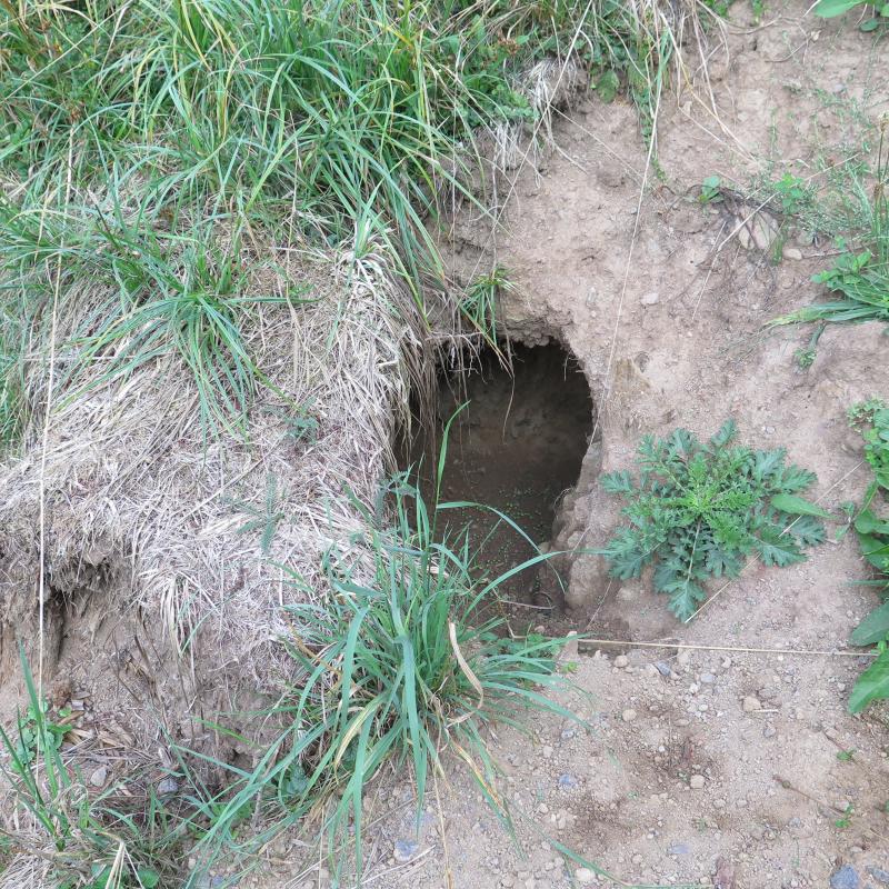 Mir fielen heute in einer Geländestufe und angrenzenden Böschungen etliche Eingänge zu Tierbauten auf. Das größte Loch hat eine gemessene Höhe von 50 cm, Breite 35 cm.