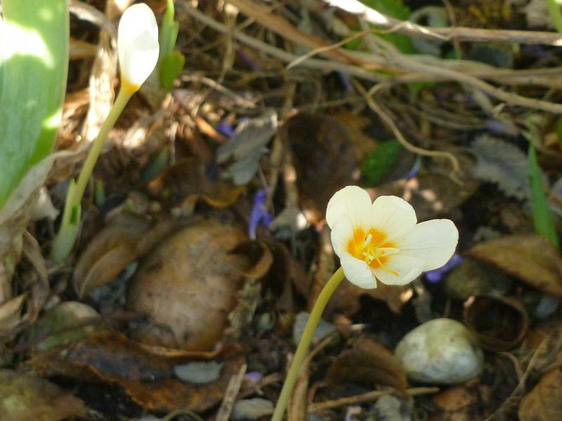 Hier ist überraschenderweise ein weißer Crocus banaticus... ich hab heute die langgestreckte Nase gesichtet, mit Glück ist er Sonntag erblüht... falls nicht die Schnecken schneller sind. ::)
