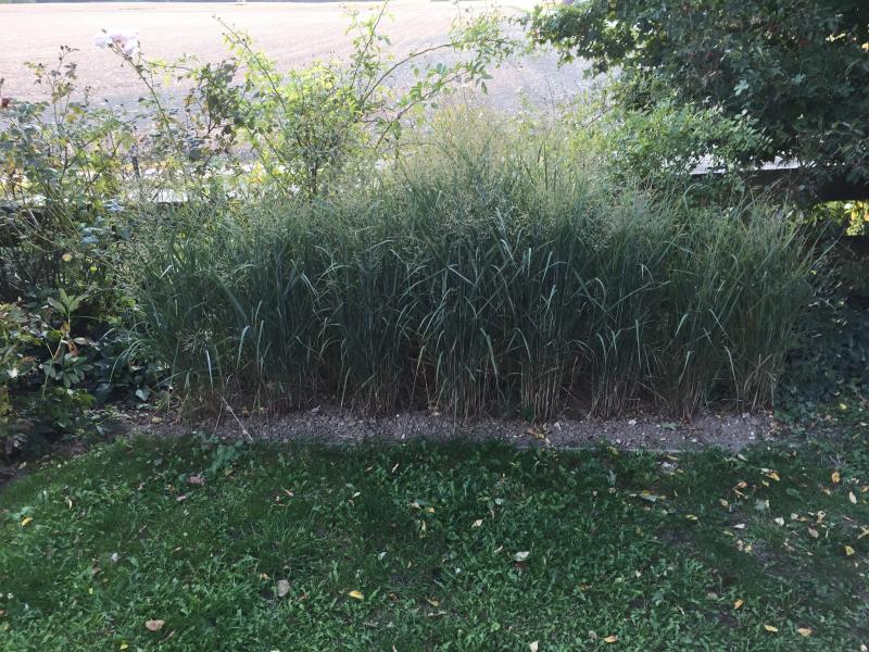 Ich finde schon diese Reihe viel zu statisch und deplaziert. Ich würde den einzelnen Gräsern einen Versatz geben und mit Astern ergänzen.