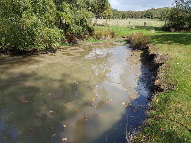 Wir überlegen ob wir ihn in der Mitte ausbaggern ,damit die Fische einmal einen Bereich haben um sich bei niedrigwasser zurückzuziehen.