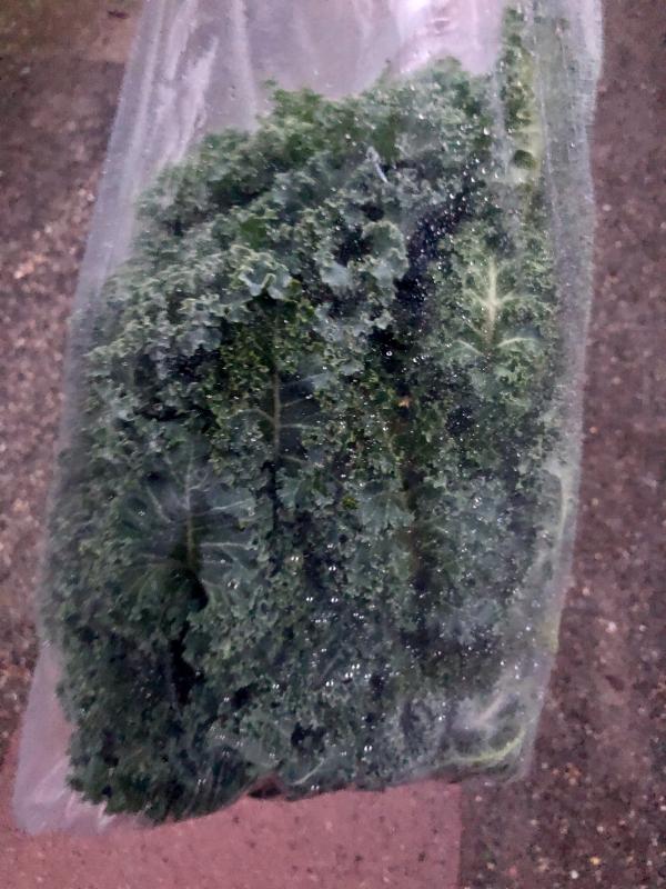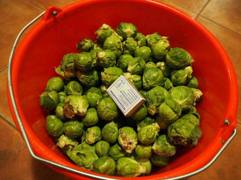 Da der Rosenkohl bei der derzeitigen Witterung bald anfangen wird von innen zu faulen, habe ich ein bisschen geerntet und werde den jetzt putzen und einfrieren.