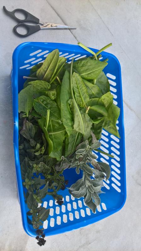 Und das vor zwei Wochen. Griechischer Bergtee, Minze und Sauerampfer.