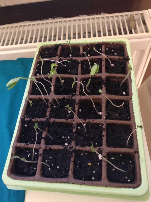 Gepflanzt vor einer Woche, jedoch ist noch nicht alles gekommen - aber das meiste. Das Gewächshaus ist jetzt zu klein, da die Pflanzen an die Decke stoßen.