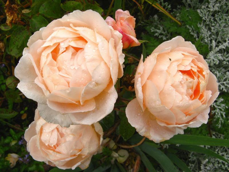 Vier seiner wunderschönen Rosen habe ich im Garten: Winchester Cathedral, St. Swithun (eine meiner TopTen), The Pilgrim und Teasing Georgia.