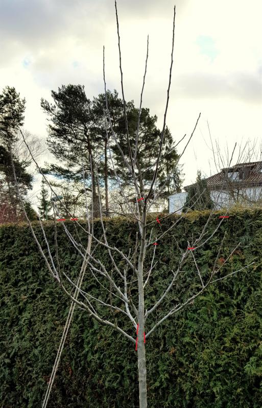 Da der Baum gut gewachsen ist, habe ich letztes Jahr auch ähnlich wie die Baumschule geschnitten.
