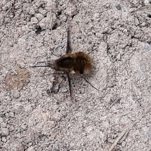 Bei sonnigem Wetter schwirrten heute viele Wollschweber um die Muscari, manche sorgten auch gleich für Nachwuchs.