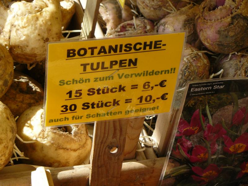 Persian Pearl ,Clusonia, Saxatilis, Polychroma, Lilliput und noch 2 -3 andere Sorten könnte ich Dir auf dem Spargelhof besorgen und schicken . Da gibt es einen Stand wo Wildtulpen angeboten werden .