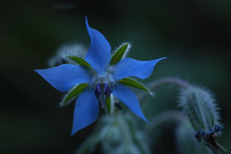 Zu demselben Thema: Borretsch wie belichtet. - Ich belichte bewusst etwas unter, denn bei Digitalkameras 'fressen' die hellen Partien leicht aus, d.h. es gibt dort keine Zeichnung (das muss man aber von Kamera zu Kamera sehen / analysieren).Bei meinen Digis ist das so.Also hier das leicht unterbelichtete Bild vom fotogenen Borretsch: