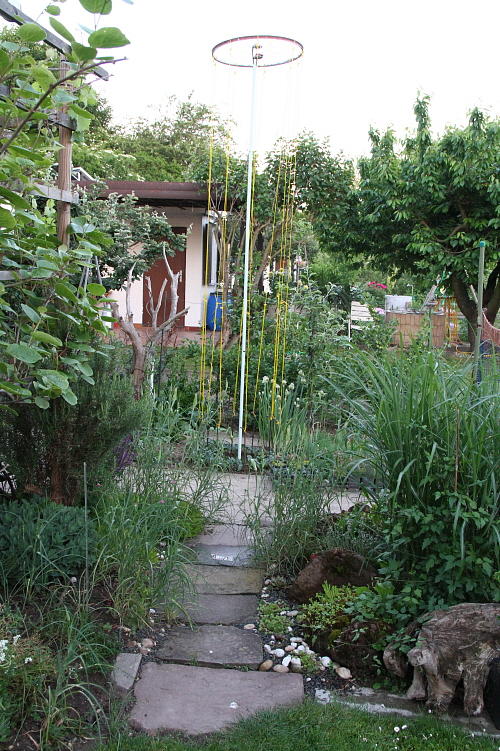 Ich finde organische Materialien schöner. Da ich einfach Freude daran habe, Klettergerüste für Stangenbohnen und Co. zu bauen, macht es auch nichts, dass die Materialien vergänglich sind, ich sie also aller zwei, drei Jahre neu machen muß.