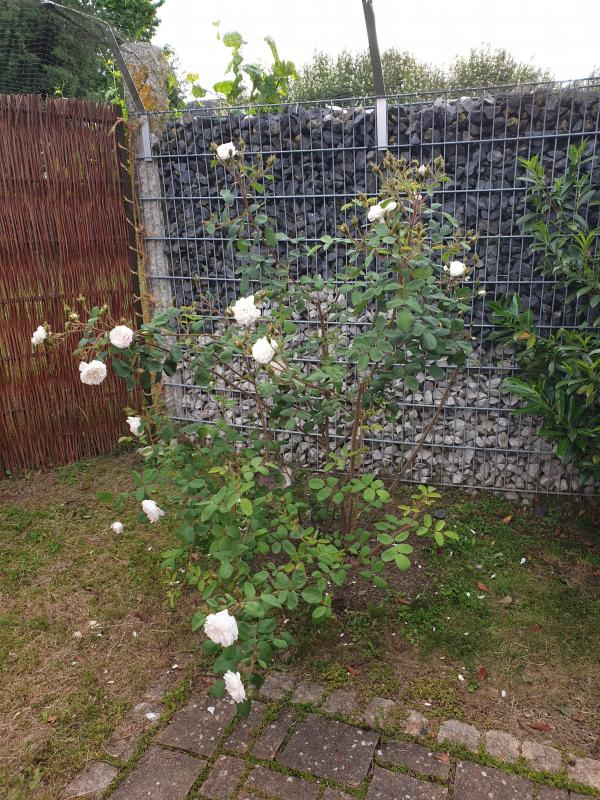 Ich habe eine Moosrose an der Terrasse namens "Shailors White Moss". Sie ist wirklich wunderschön, riecht phantastisch und blüht auch gut.