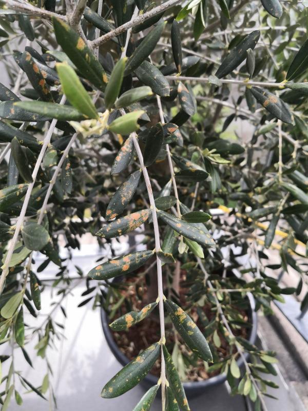 Meine Oliven haben dieses Jahr durch den vielen Regen verstärkt Occhio di Pavone, eine Pilzerkrankung.