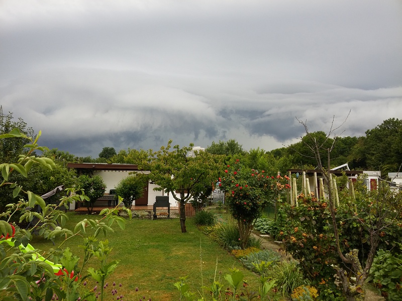 Hier ist vorgestern ein Regengebiet durchgezogen, noch recht harmlos. 30mm in 15 Minuten, mit 5min lang 1cm großem Hagel.