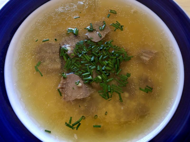 rindssuppe mit grattini (pasta all'uovo)