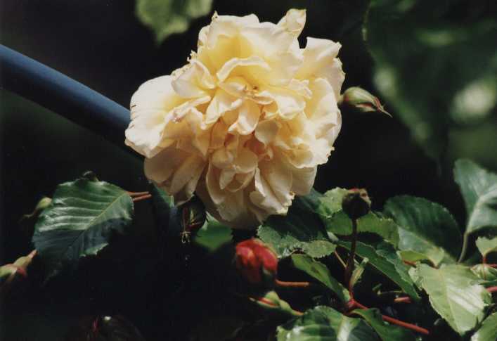 .Easlea's Golden Rambler habe ich seit ca. 6 Jahren im Garten. Ein Wuchsmonster, gesund gut duftend. Eine ziehe ich am Bogen, dort muss sie regelmäßig runtergesäbelt werden, sonst wird sie da zu heftig. Eine weiter wächst in einem Turm,steht verhältnismässig schattig, hat viel Wurzelkonkurrenz, kommt aber gut zurecht. Sie blüht relativ lange, ich habe ihr in beiden Fällen noch eine Clematis als Gesellschaft gepflanzt. Hier noch ein Foto vom Bogen (am hintersten Bogen befindet sich Ealea's links):