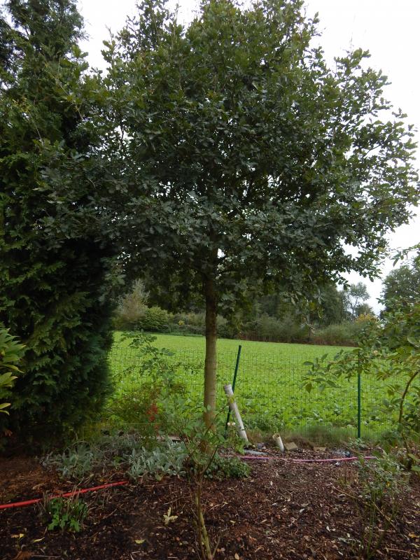 Die Eiche finde ich schon mal schön und würde die Thuja entfernen, bevor sie die Entwicklung der Eichenkrone behindert. :)