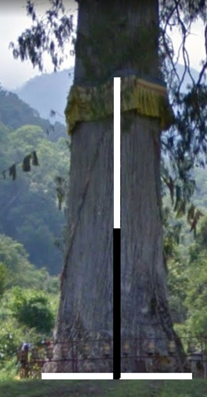 Tsenden (Cupressus corneyana) ist außerhalb des Landes fast unbekannt, laut westlichen Quellen bis 18m hoch. Geht man in GoogleMaps auf die Reise, sieht man einen sehr langen Schatten, der Baum ist über 5 mal so hoch, vielleicht sogar der höchste freistehende Baum der Erde (siehe Bildanhang, Quelle QoogleEarth).