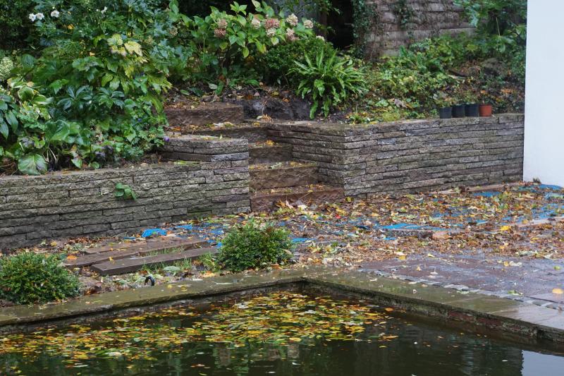 Hatte ich irgendwann, irgendwo schonmal gezeigt, eine Trockenmauer aus 0815-Betonplatten, halbiert, in den Schaugärten Appeltern:
