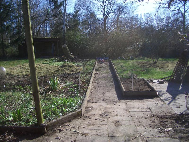 Das Hauptbeet links bekommt langsam ein Gesicht.