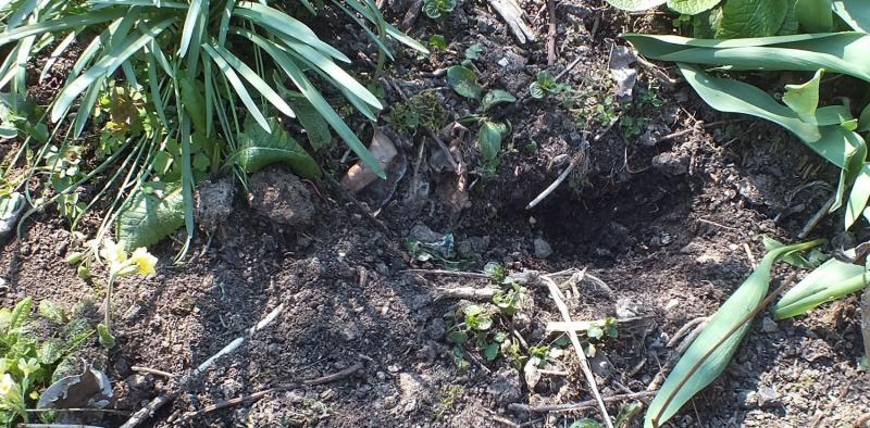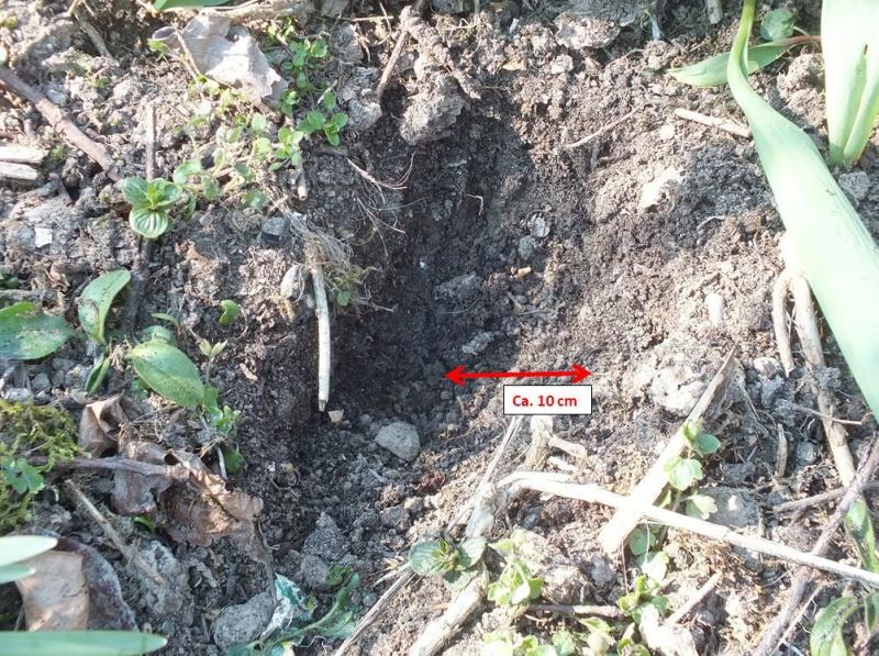in größeren, zeitlichen Abständen finde ich in unserem Garten solche Löcher. Im Prinzip so gegraben, wie Hunde das tun (also vorne mit den Vorderpfoten gewühlt und Erde nach hinten ausgeworfen). Kein weiteres Loch nach unten. Keine erkennbaren Pfotenabdrücke.