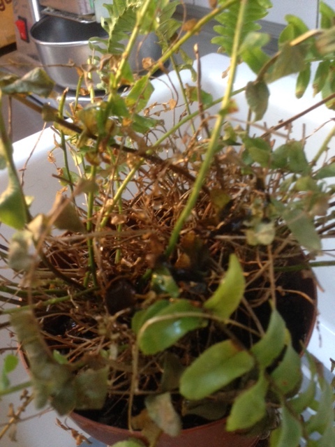 die Wedel meines Zimmerfarns verkahlen von unten. Woran mag das liegen?