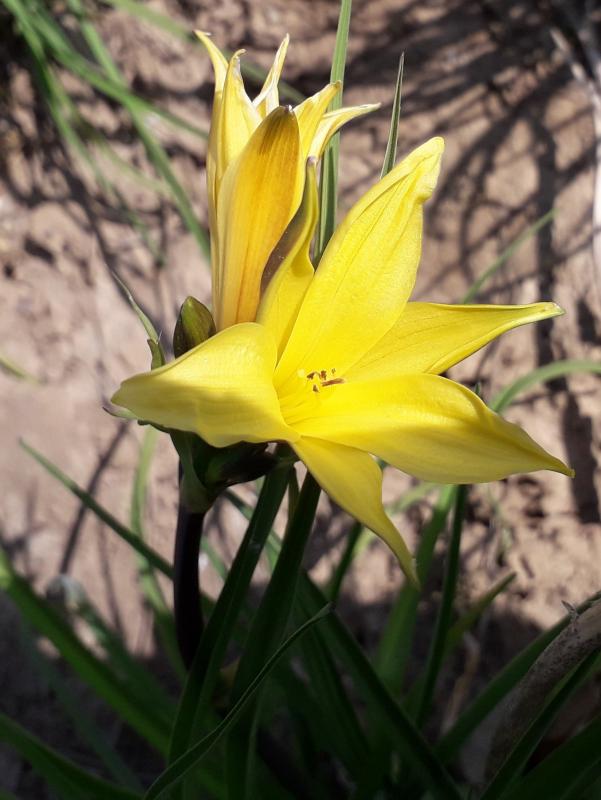Die erste Blüte ist da. Hemerocallis middendorffii blüht 16 Tage früher als letztes Jahr.