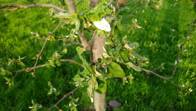 meine zwei Quitten (Cydopom und Vranja) kräuseln die Blätter. Außerdem sind einzelne Knosten wohl abgestorben. Die Symptome sind bei beiden Bäumen gleich. Beide sehr jung.
