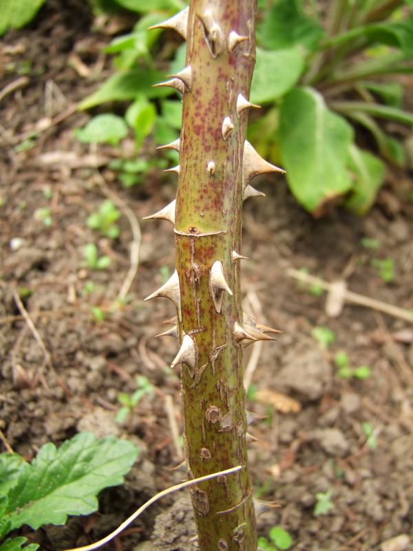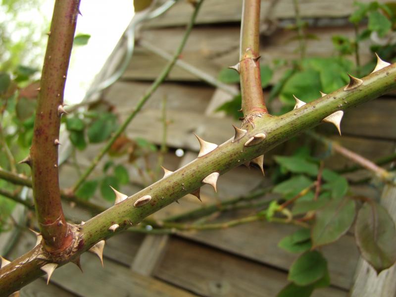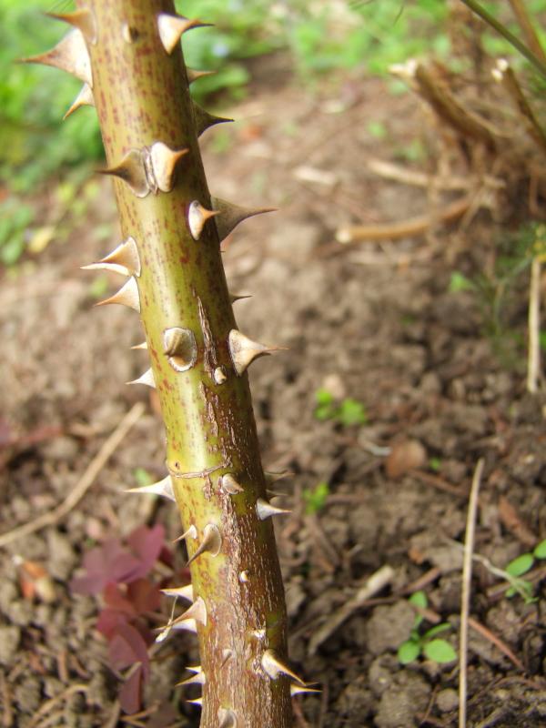 Hier nochmal Merkmale zu 'Crimson Glory.Allerdings sind meine Rosen im Austrieb noch nicht so weit und teilweise steckengeblieben aus Spätfrostgründen.Also erstmal Bestachelung unten.