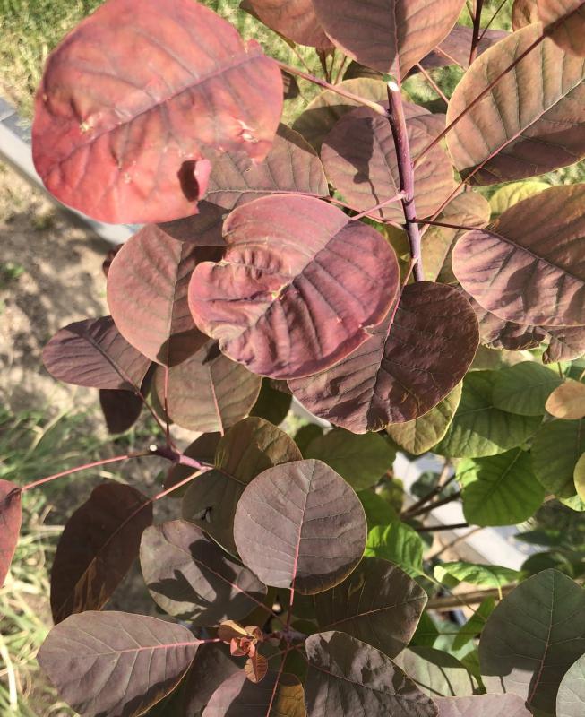 Ich habe mir den Perückenstrauch heute nochmal genauer angeschaut und habe bemerkt, dass nicht alle Zweige diese dunkle Verfärbung haben. Die ganz dünnen haben keine.