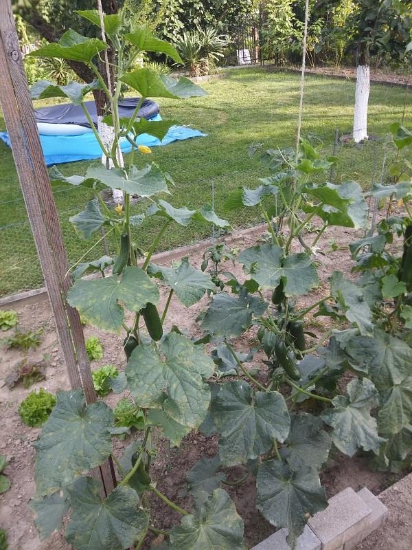 Entwicklung bisher: Die "Zaungurken" am Grundstücksrand haben sich gut entwickelt und liegen bei 2m-Ranken, Gesundheit gut. Früchte zähle ich nicht mehr. Gefühlt kommt fast jeden Tag eine pro Pflanze. Nachteil war bisher, dass sich manchmal eine Gurkenfrucht klammheimlich Richtung Koniferengestrüpp beim Nachbarn entwickelt hat, nicht gesehen, Pflückzeitpunkt verpasst, zu lang hängende Dinger hemmen dann die Entwicklung anderer Früchte und den Wuchs der Pflanze. Midias war am Zaun die bessere Sorte.