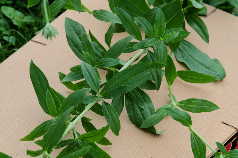 Niederösterreich auf 550m neben Waldweg, am 11. August. Der Stängel ist rund und wie die Blätter unbehaart. Die Blätter sind kreuzgegenständig angeordnet. Der Stängel hat bei jedem Blattpaar einen gelenkartigen Knoten.