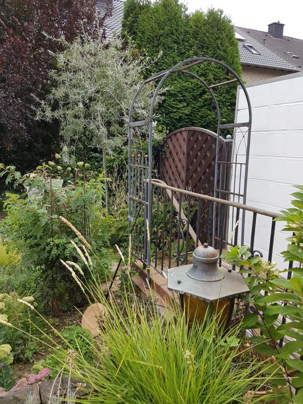 Seit ca. 2 Monaten steht eine Emilia Plater an meinem Rosenbogen, der 2,5 m hoch ist und da. 1,5 m breit.
